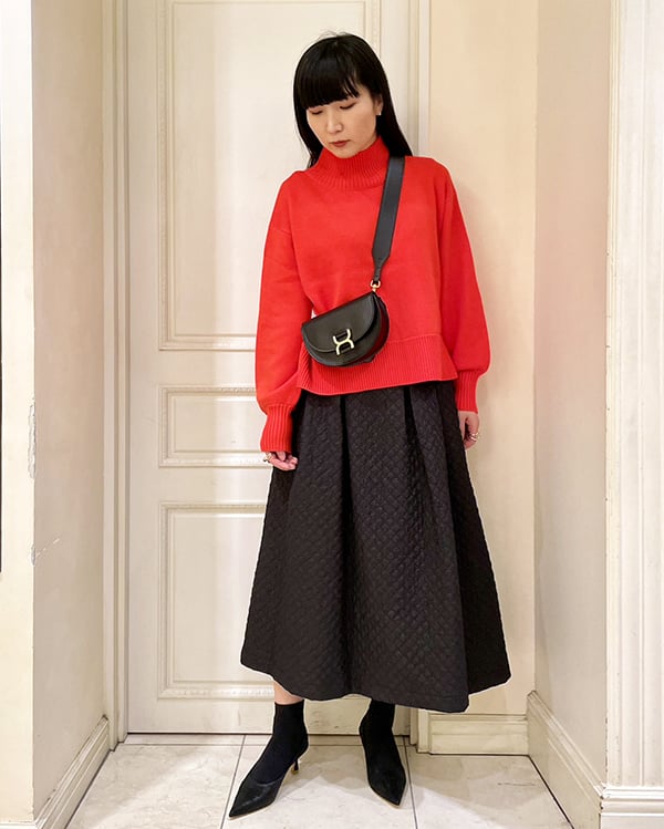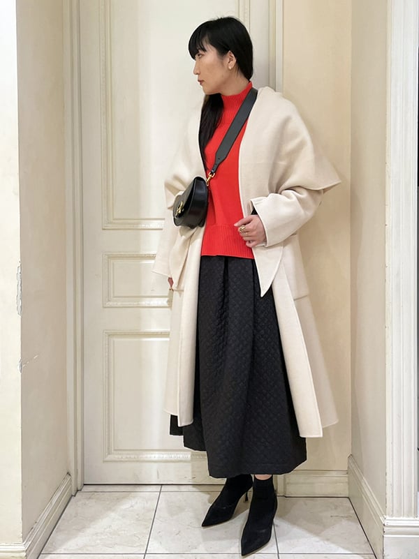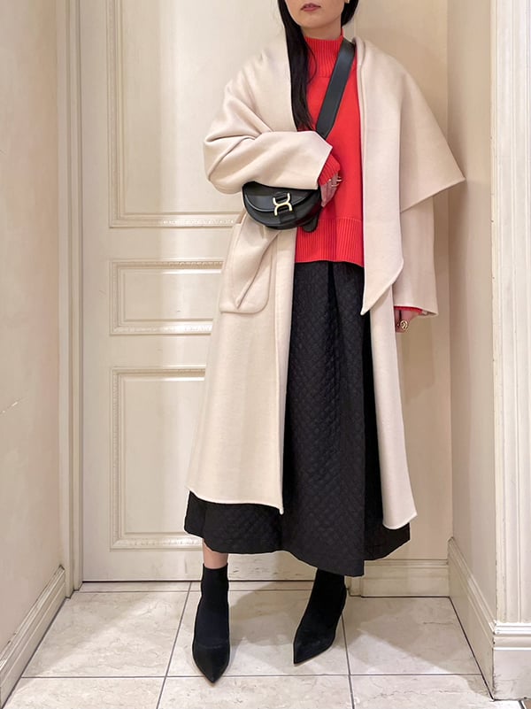 コート以外はブラックで統一したので、モノトーン派の方にも挑戦しやすいです。