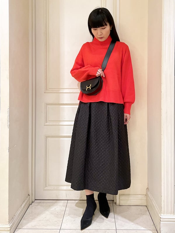 シーズンムード高まるオレンジニットを主役にメリハリカラーコーデです!
