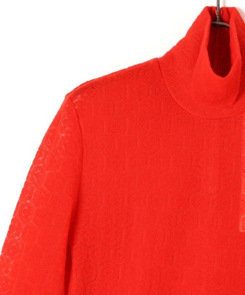 亀甲花菱紋という紋様をナイロンの天竺にジャガードでウールを編み込んで表現しているトップス。