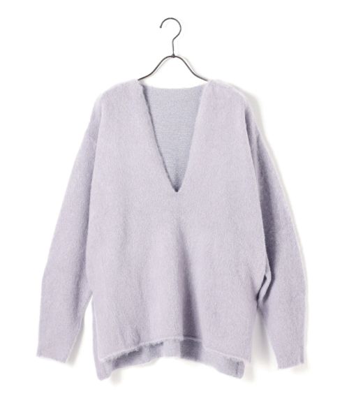 うっすらと靄がかかったような風景の記憶を、起毛させたアルパカウールでパウダー感を表現しています。空気を孕んだように軽く、オーバーサイズで着心地の良いニットなので、襟のカーブに合わせてシャツやニットをレイヤードしたスタイルもおすすめ。汎用性にも優れた一着に仕上がっています。