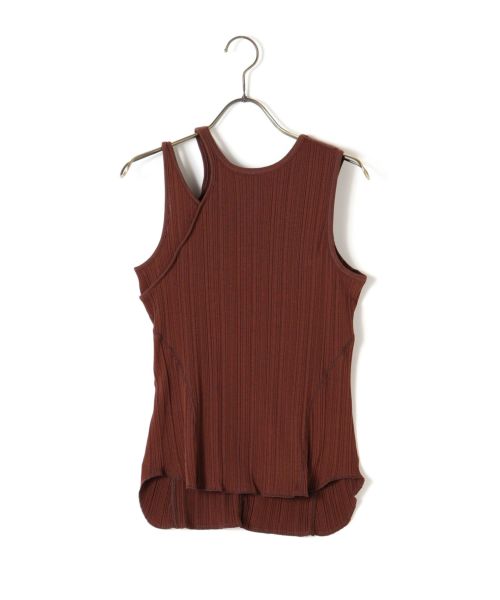 Mame Kurogouchi(マメ クロゴウチ)のジャージートップ。 柔らかな風合いに加え、立体感のある豊かな表情で肌心地の良いカットソーは、シンプルながら右肩は重なりのあるレイヤードされたような曲線のデザインが印象的。身体に美しく沿ったシルエットを演出してくれる1枚です。さらりと着用することができ、上半身をコンパクトにみせるタンクトップに仕上がりました。