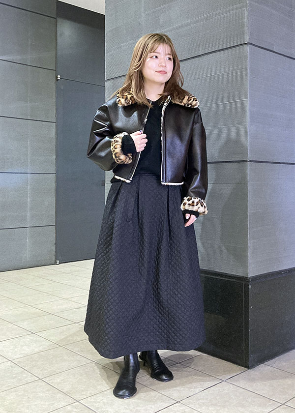 AMERI(アメリ)のリバーシブルボアジャケットです!着るとこんな感じにバランスよく着こなせますよ。