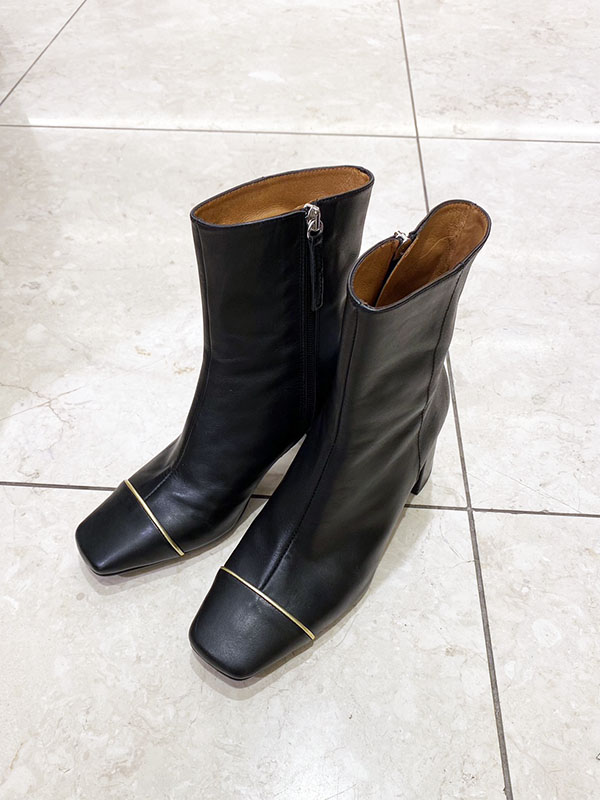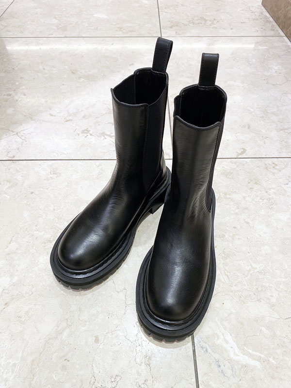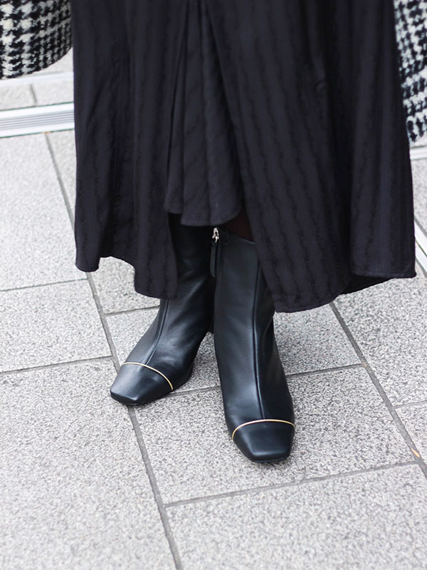 スッキリとしたシルエットがきれいなこのブーツは足元が見えるワンピースと合わせると可愛いですよ〜^^