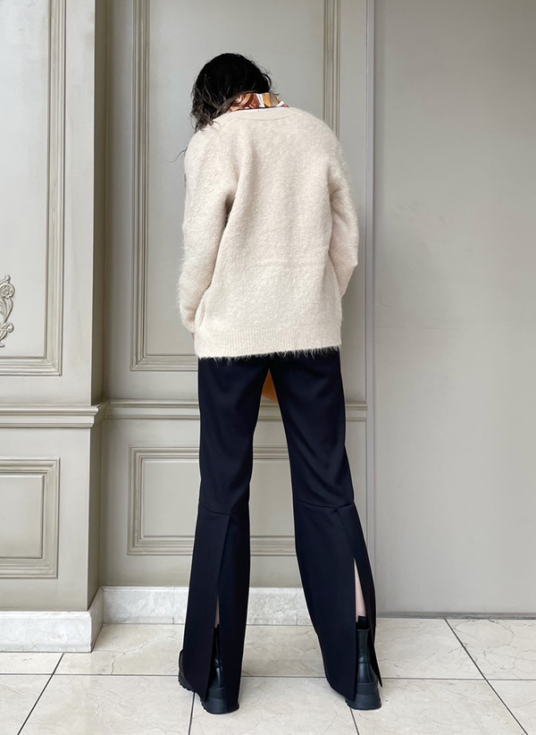 シルエットが美しいこちらのパンツは、バックのスリットとセンターラインがポイント。
