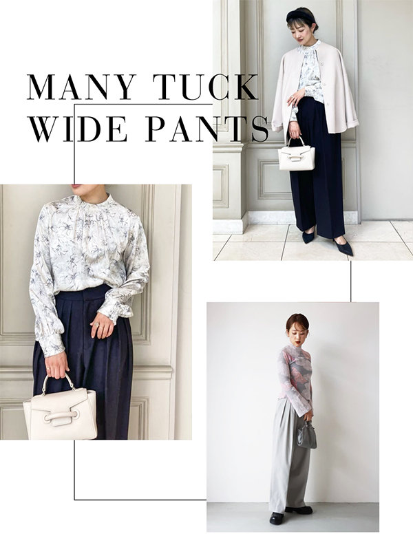 程よい分量感のワイドシルエットで、どんなコーディネートにもベーシックに使える美脚パンツ。