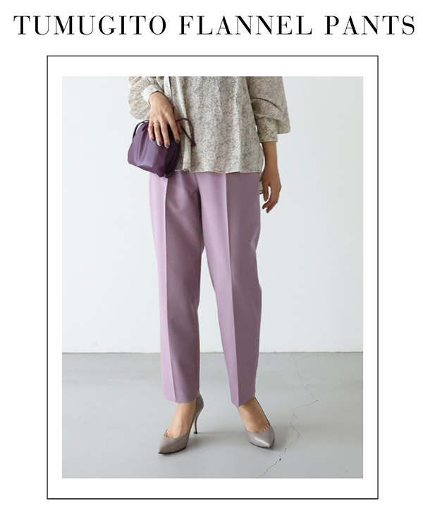 ワンタックで腰周りをカバーし、身体のラインを拾いにくいのが嬉しい。ややハイウエストに仕上げており脚長効果も◎。