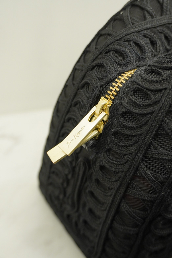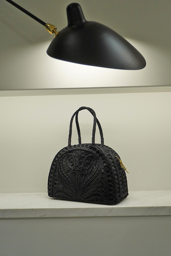 コード刺繍のテクニックを用いたアイコニックな半月型のバッグ。