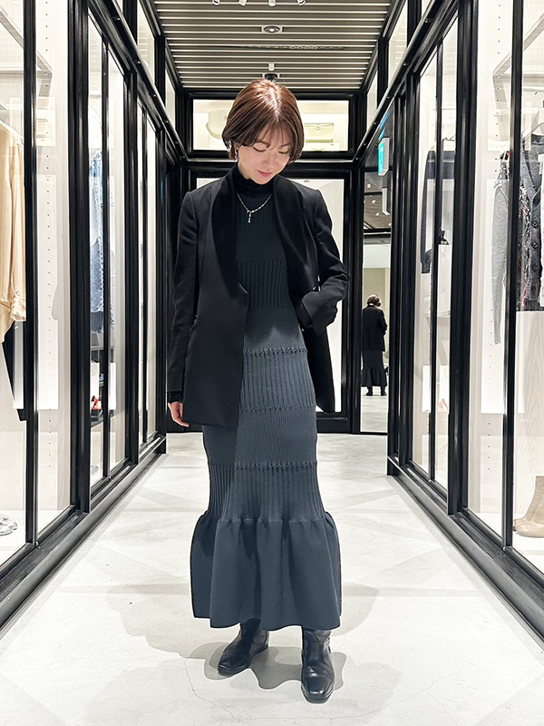 3Dコンピューター・ニッティングの技術により、ボリューム感がありながら、身体にスッと沿う綺麗なシルエットが実現できます。