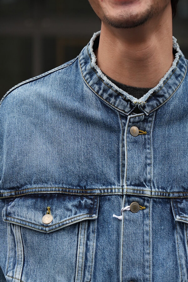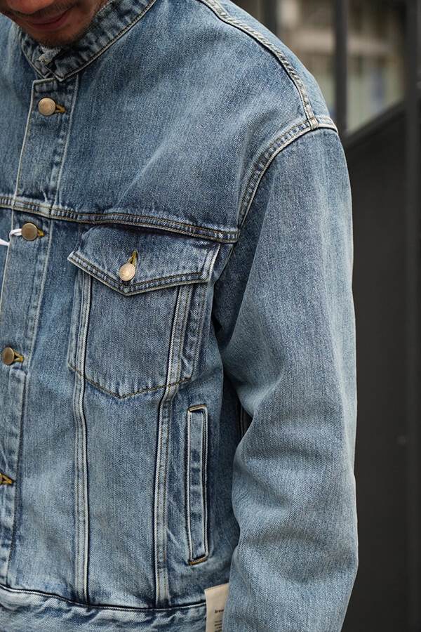 デニムの再資源化を見据えた新たな生地となっています。生地の印象はしっかりと厚みのあるデニムそのものとなっています。