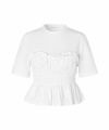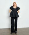 ウエスト部分や袖口部分の細かなギャザーやエアリーなフリル、華奢なリボンなど、繊細かつ存在感のあるディテールが特徴的。