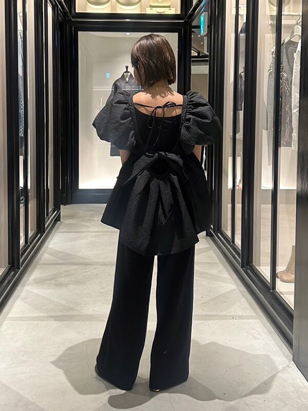 ②背中をガバッと開いたカットアウトや大胆な肌見せが特徴です!