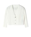 白のボタンがデザインポイントです。ハイウエストで骨格ウェーブさんは美しさ爆上がりのシルエットです。