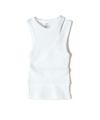 ホワイトのステッチがアクセント。リブニットに合わせてすっきりした着こなしに。