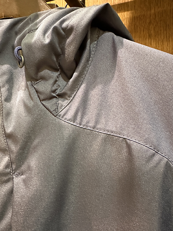 こちらのストレッチマウンテンパーカーは、ラグラン袖と脇にあるマチを融合させる事で広角度の可動域を実現したパターン取りになっているデザインです。