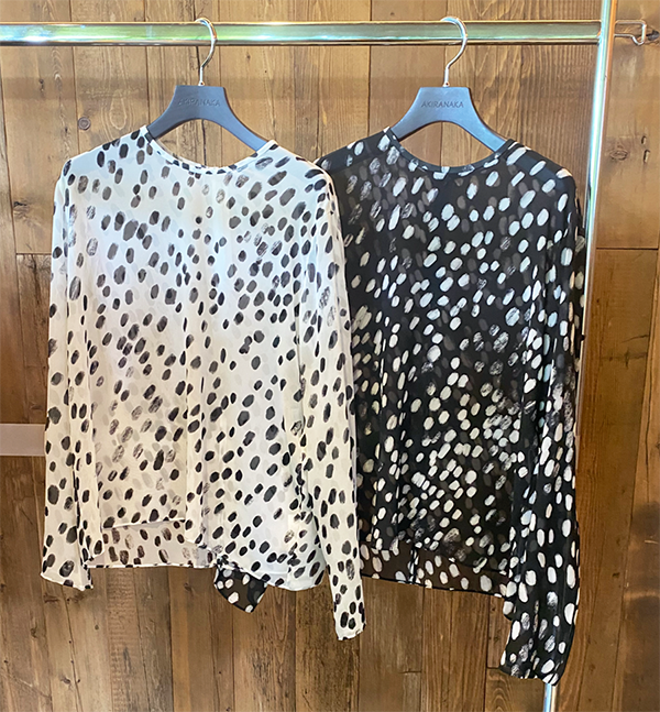 今シーズンのグラフィック柄であるヒョウ柄は本来柄が持つ個性(その柄が導く印象)とは異なる意味でデザインされています。ヒョウ柄はエレガンスさや強さを感じ、抽象画には知性や自由を感じるかもしれませんが、そのいずれでもなく忘却によって何を想像するかを問われています。