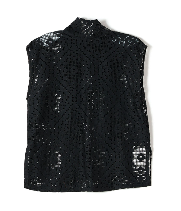 テーブルクロスのようなデザインのレースを洋服のテキスタイルとして用いることでそのIDを変容させています。甘くなりすぎない洗練された大人のスタイルを演出してくれます。