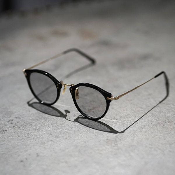 ボストンシェイプのプラスチックリムをマンレイブリッジと特徴的なデザインのヨロイパーツで構成したコンビネーションフレーム。繊細な彫金と美しいメタルパーツも高い評価を受けている所以です。