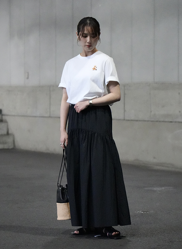 ゆきこは小物を黒でまとめてシンプルモードに。