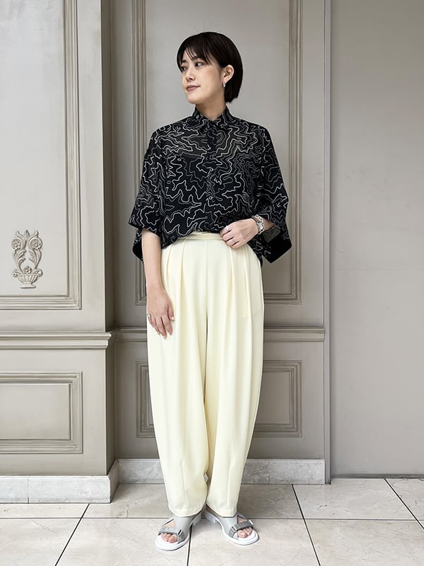 この柄に一目惚れして購入されたそうです!一枚でオシャレ見えする素敵アイテムですね。