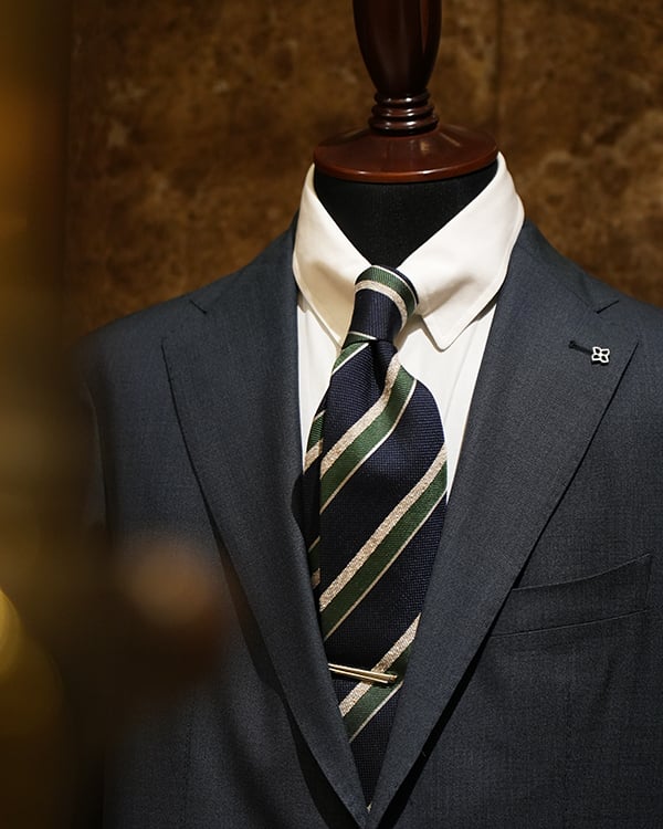 ちなみにネクタイを選ばれる際のポイントは、スーツとネクタイのお素材を合わせておくことです。