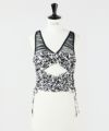 FETICO(フェティコ)のビスチェは、オリジナルの芍薬柄とシアー素材のコンビネーションもポイントのビスチェは、たっぷりとギャザーが身体にフィットした印象的な一着。