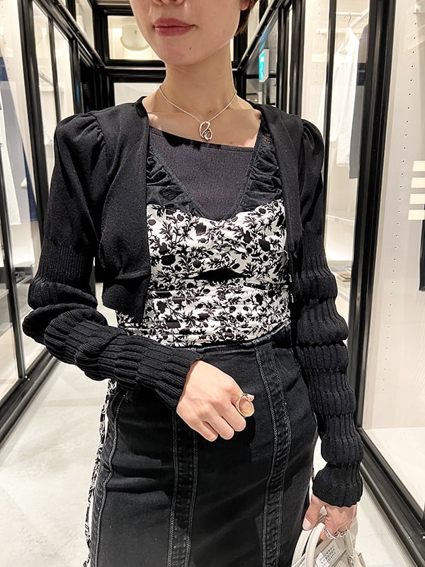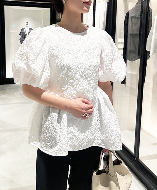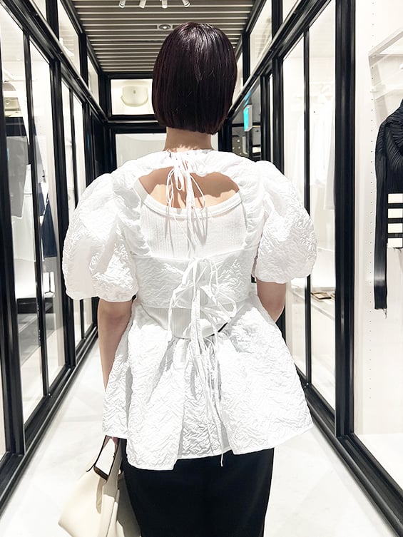 ふんわりとしたパフスリーブとバックのリボンディティールが女性らしさいドラマティックさ満載の可愛さです!