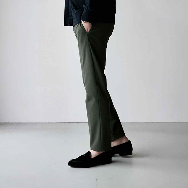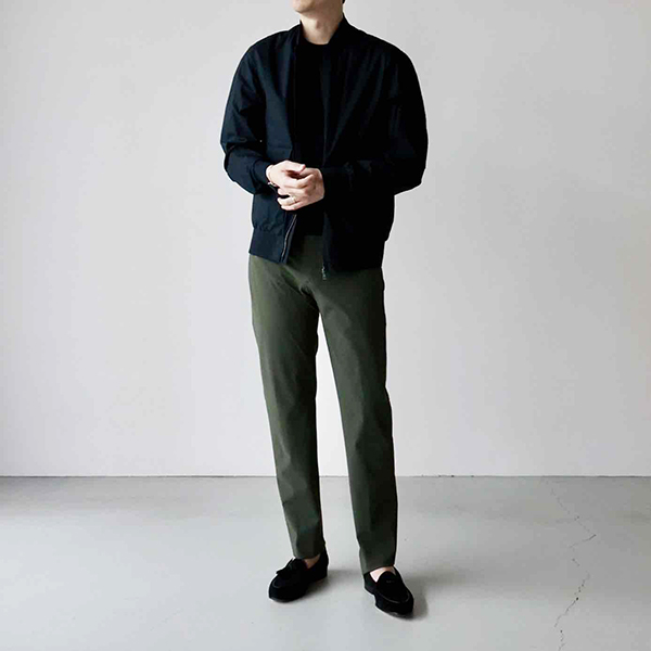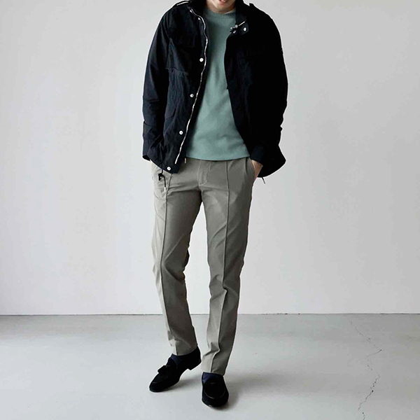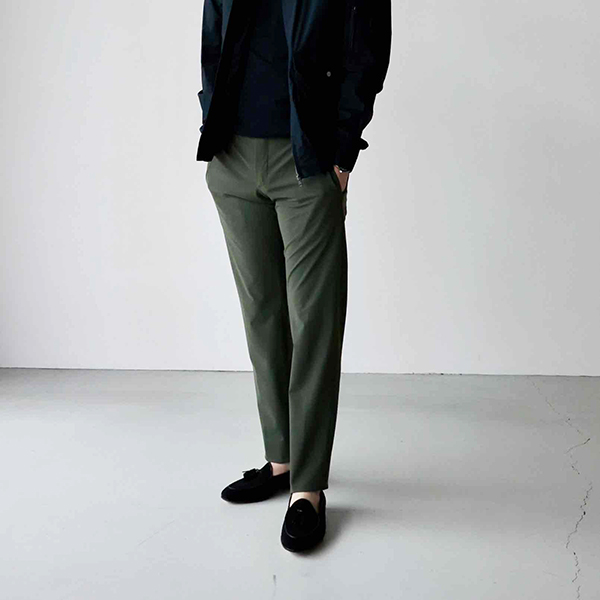 こちらも細身ながらストレッチがしっかり効いており、シワになりにくくスポーティなスタイルにも対応しくれます。