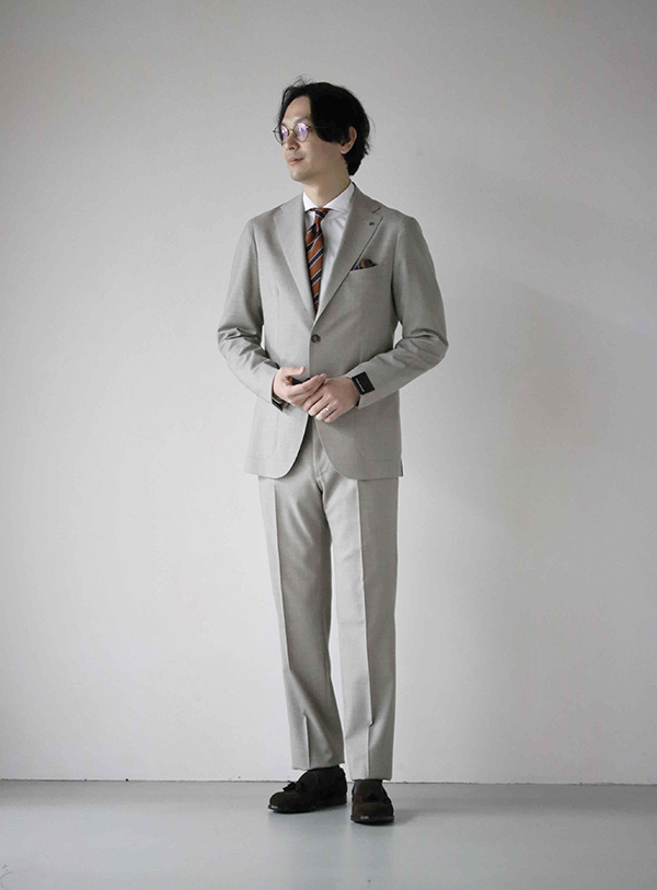 こちらのスーツはカタログのモデル撮影にも使用されていて、そちらのコーディネートもお洒落なので是非参考にしてください!