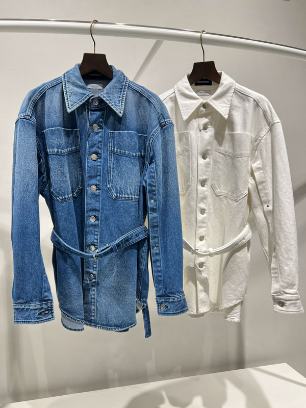 生地は厚めで、ジャケットとして羽織るのはもちろん、ベルトを外してシャツ風に着こなすのも素敵です。