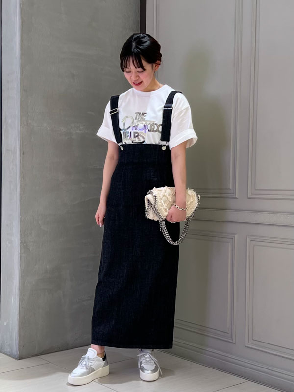 Tシャツやスニーカーとラフに合わせても女性らしい雰囲気の出る深めのスリットがポイント。