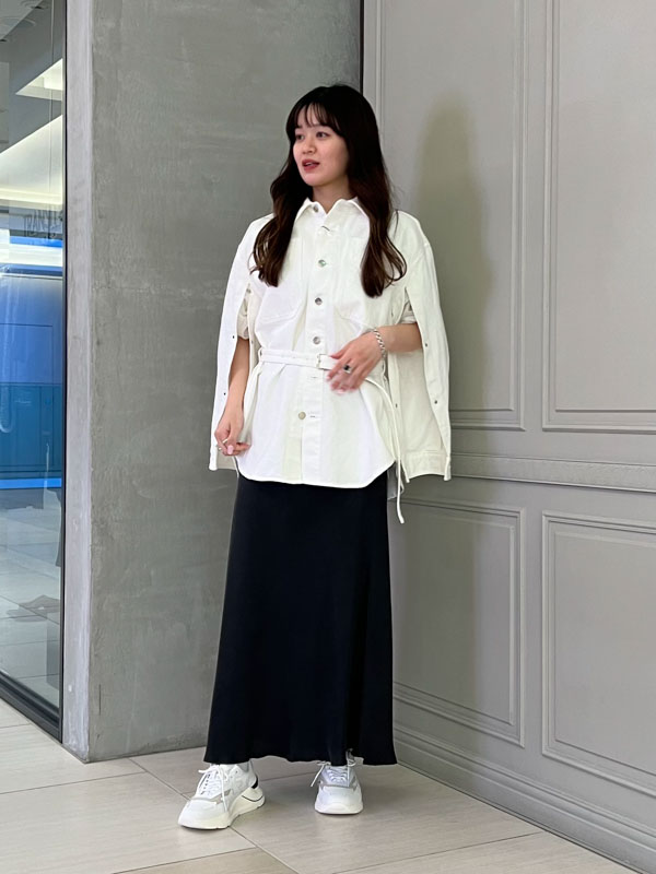 綺麗見えするホワイトはスカートやスラックスパンツと合わせるのがおすすめです。