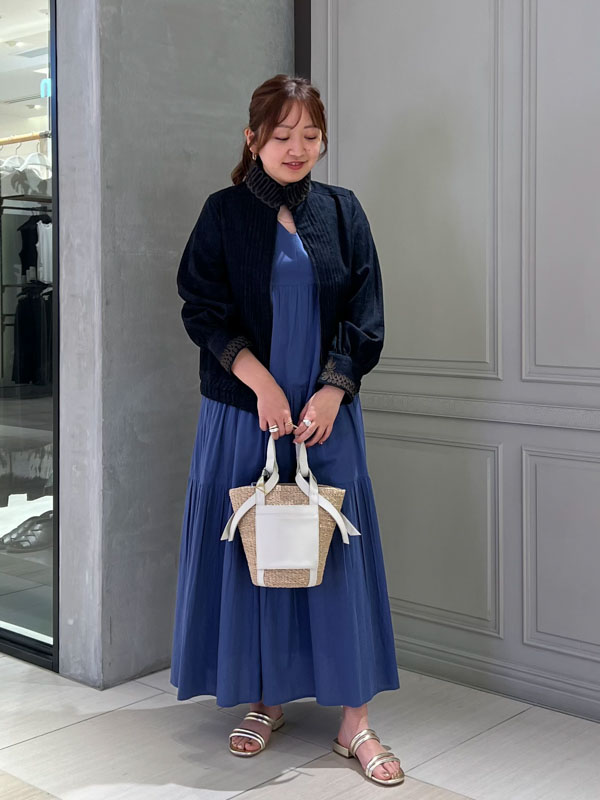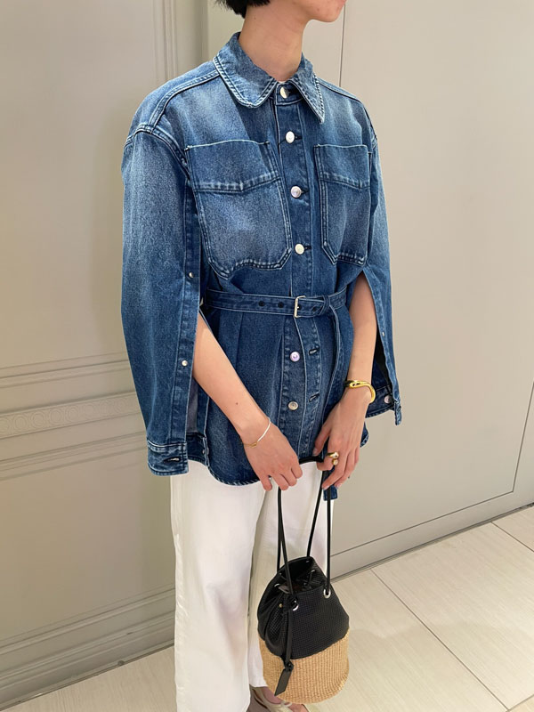 袖のスリットを開けて抜け感を出し、ウエストのベルトをぎゅっと締めてメリハリのあるスタイリングで女性らしく着こなして頂けます!