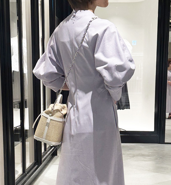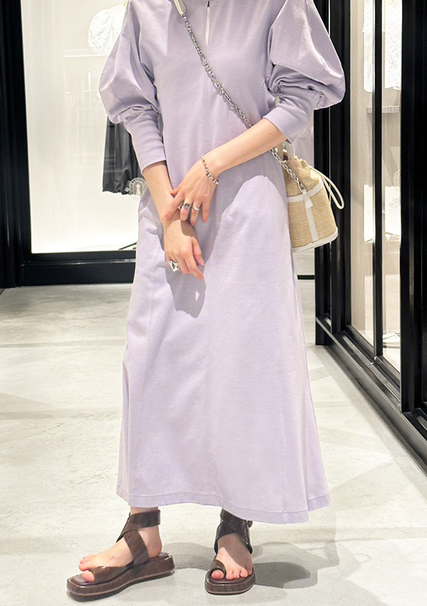 私のファーストマメであり、思い出深い“コットンジャージードレス”。マメと言えばワンピース!やっぱり初めはワンピースをゲットしたくなるブランドです。女性らしい美しい身体のラインを出してくれるシルエットとカジュアルなコットン素材が日常使いしやすいワンピース。24SSは春らしい淡いパープルが登場し、パーソナルカラーがサマーかつパステルカラーが大好きな私は、展示会の写真を見て絶対着たい!と感じた1枚です。