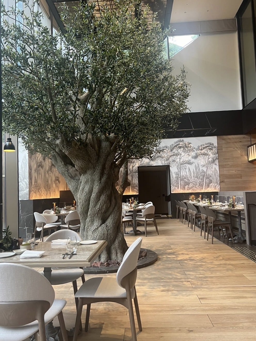 窓側には、東京タワーが見える他、店内中央には立派なオリーブの木が私たちをお出迎えし、店内に彩りと癒しを届けてくれています!