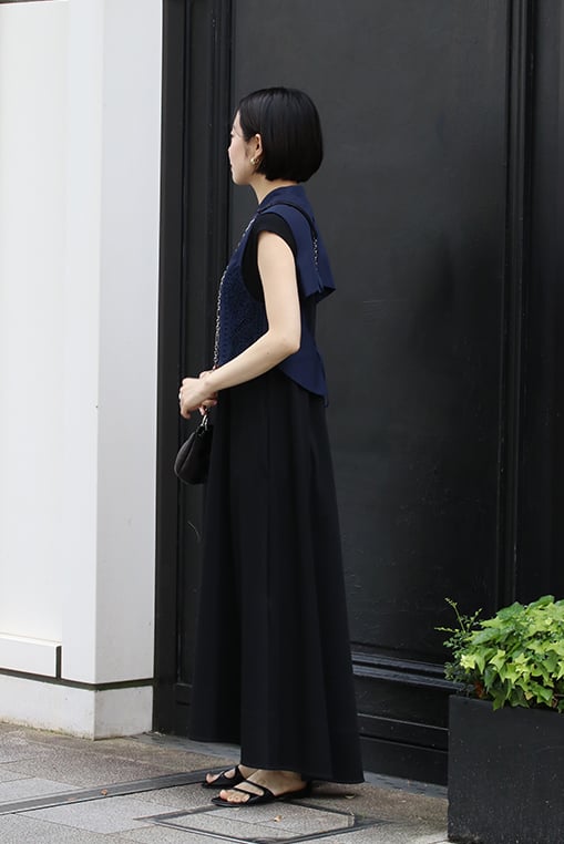 シンプルなファッションが好きです。流行り廃りよりも自分にしっくりくる自分のスタンダードになる洋服を、いつもチョイスしています。マメのお洋服はいつものシンプルなスタイリングに女性らしさがプラスできるので、重宝しています。