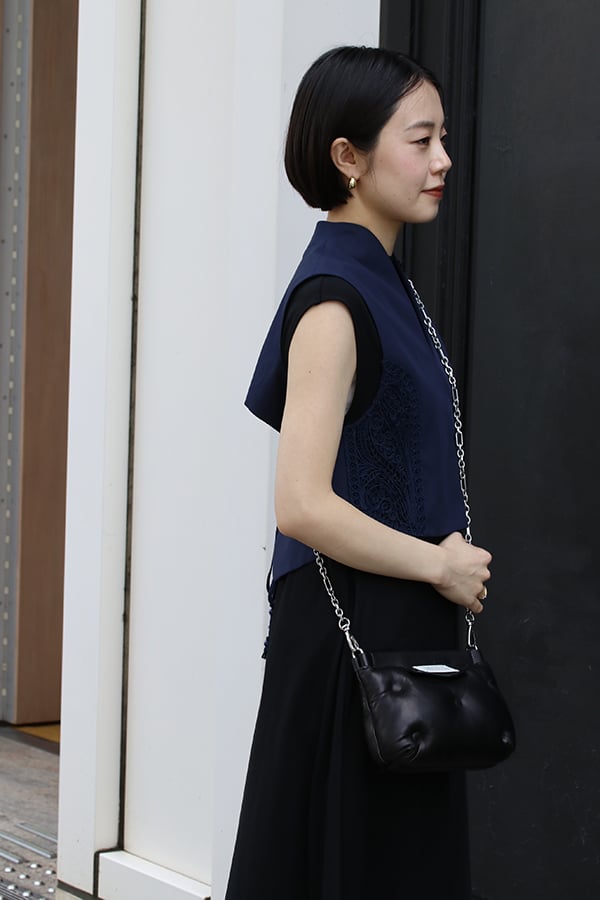 いつものファッションにプラスしやすく、そして全く違う雰囲気に仕上げてくれるこのアイテムが好きです!このお洋服を着るだけで、女性らしさや、きちんと感をプラスしてくれると感じました。マメらしい刺繍に心が惹かれるのはもちろんですが、着回し力が抜群です。手持ちのカットソーワンピース以外にもマメの綺麗めなワンピース、デニムにTシャツスタイルに合わせたり!またシーズンも長く愛用できそうです。