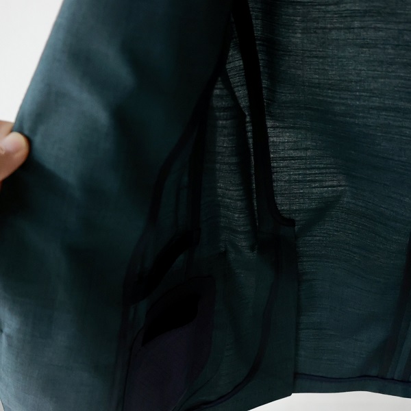 DAKAR(ダカール)は基本的に裏地なし。春夏物は袖裏も付いていない最軽量モデルです。写真でもわかる通り生地も薄手なので裏側が透けて見えます。