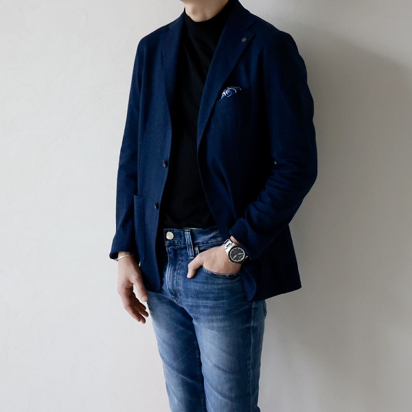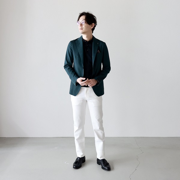 主にアンコン仕立てのアイテムが多く、軽く着心地が良い。そして特にシルエットが細身で着用した際のスタイルアップ力は抜群です。
