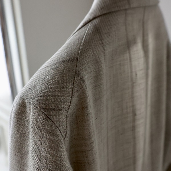 肩の縫い合わせが斜めに入っていますが、前見頃の生地を多くとっていることが分かります。