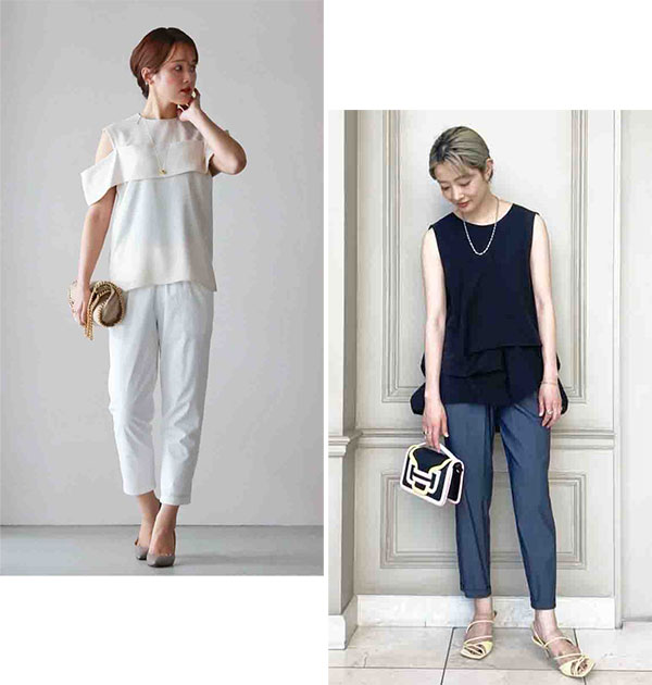 カジュアルスタイルの定番、スカートやデニムとタンクのワンツーコーデも、いい具合に甘さが足されて、全体のスタイリング力も自ずとUPします!