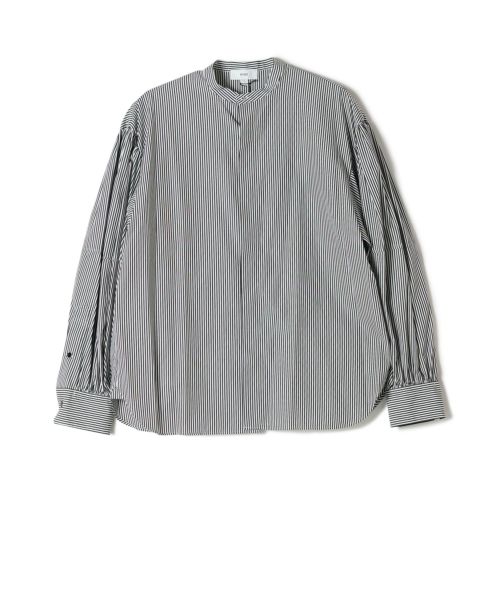 HYKE(ハイク)のシャツ。FRENCH VINTAGE SMOCKからインスピレーションを得てデザインされたHYKE(ハイク)のバルーンスリーブブラウスです。肩山部分にタックが入ったボリュームがあるデザインながら、ショルダーラインが内側に設定されており、肩幅は広く見えすぎないようになっています。