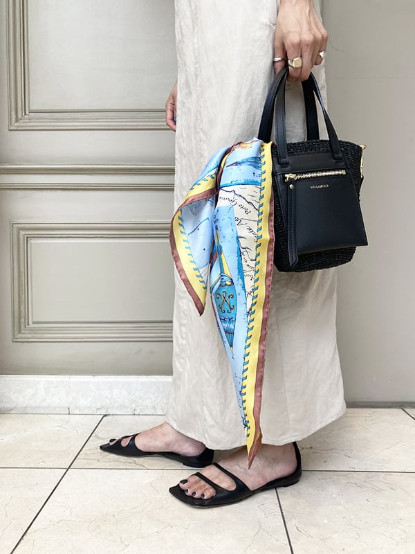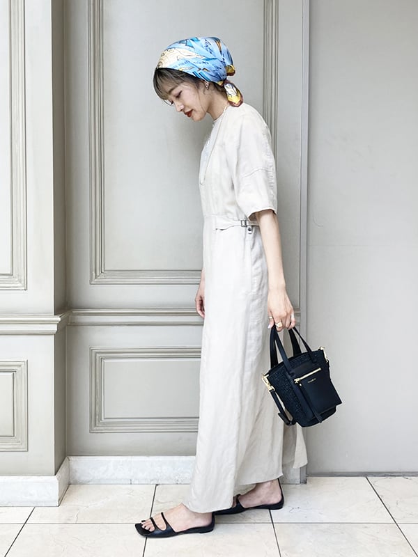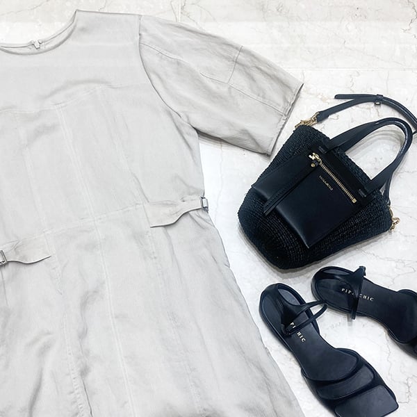 お次は、ウエストマークドレス×カゴトートバッグ×ブリッジサンダルでスタイリング!