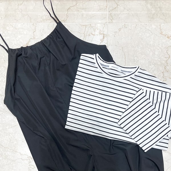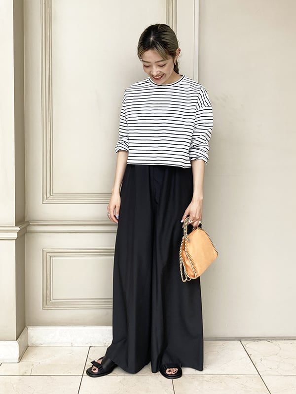 ボトムはブラックを選んでモノトーンで合わせても素敵です。