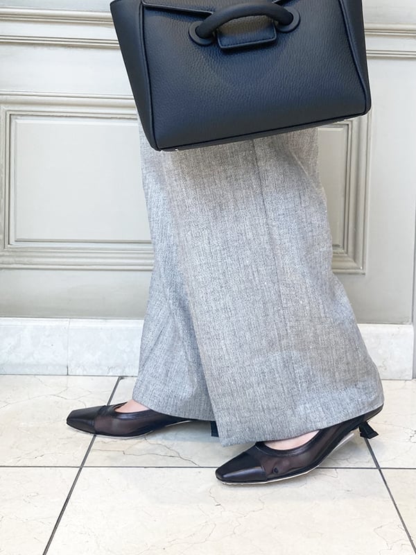 まず最初にご紹介したいのが、ラメリネンパンツ×メッシュパンプスでスタイリング!!