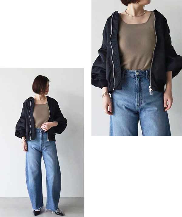 カジュアルなアイテムと合わせれば、まろやかに中和してくれてきれい目なエッセンスをプラス。
