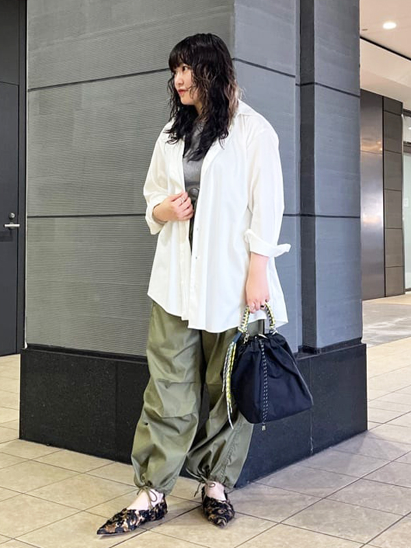体形を気にせず着こなせるゆるめのシアーで大人に。