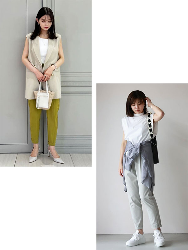 通勤やママ行事のきれいめシーンから、運動会や公園のカジュアルシーンまで頼れる、美脚パンツが返り咲き!