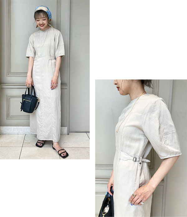 肩回りを華奢に見せてくれるアメリカンスリーブ仕様が女性らしい印象に♡