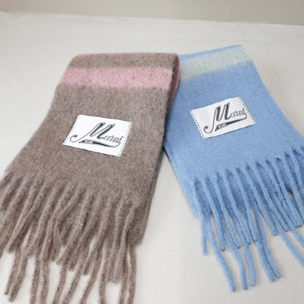 MARNIのマフラー。 ブラッシュドモヘアとアルパカ混紡製の温かみのあるスカーフです。 シンプルなデザインながら大きなストライプ柄がデザイン性をプラス。 グラデーションのような色使いがコーディネートの完成度を高めてくれそうです♡