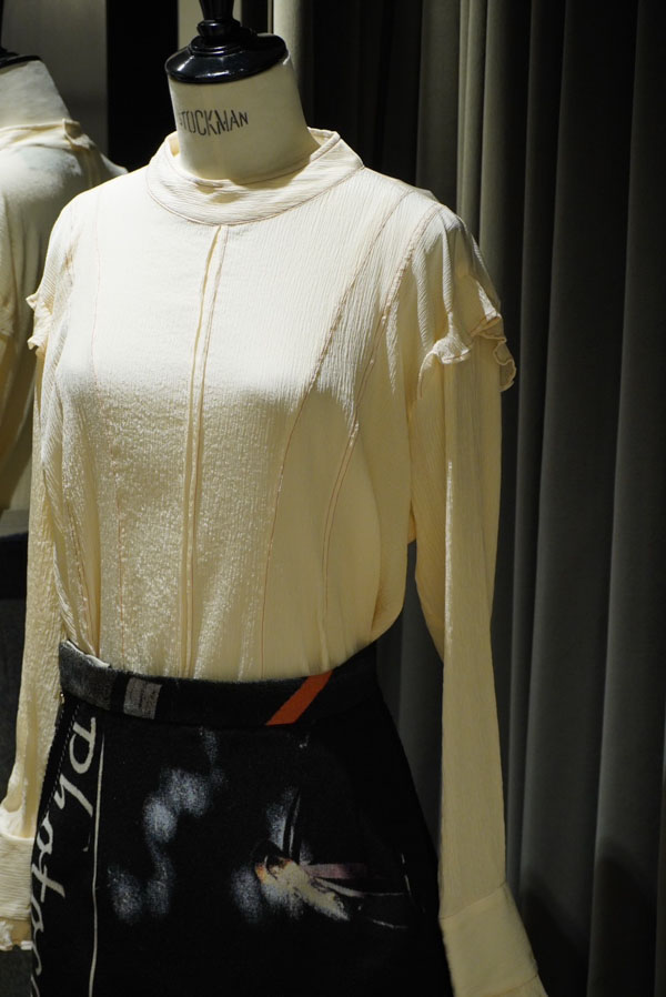 シルク楊柳を使用したフリルトリムのアイテム。デニムやショーツと合わせてデイリーにも、スカートと合わせてエレガントな雰囲気にも変容可能です。